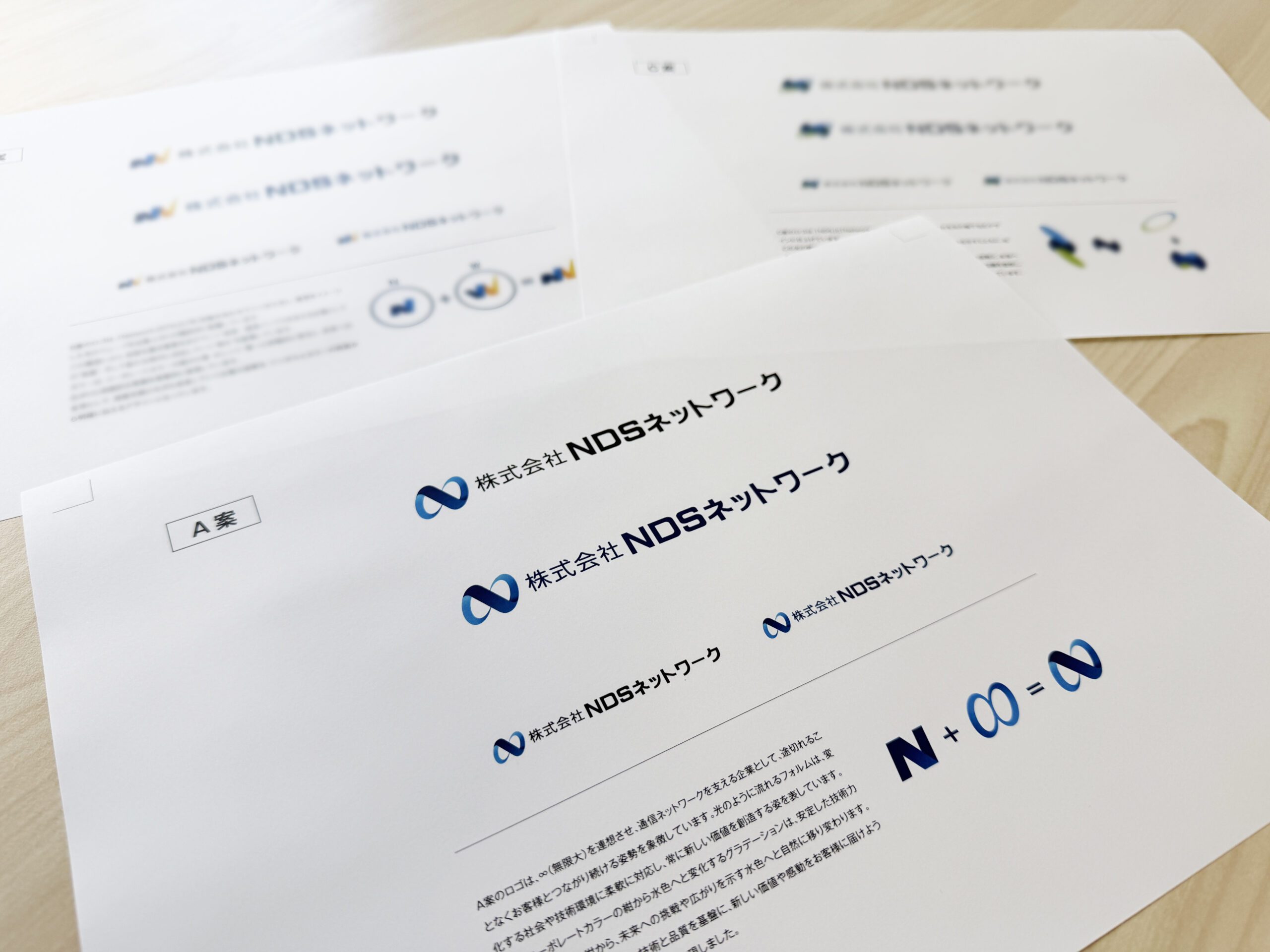 ロゴは、∞(無限大)を連想させ、通信ネットワークを支える企業として、途切れることなくお客様とつながり続ける姿勢を象徴しています。光のように流れるフォルムは、変化する社会や技術環境に柔軟に対応し、常に新しい価値を創造する姿を表しています。また、コーポレートカラーの紺から水色へと変化するグラデーションは、安定した技術力と信頼性を示す紺から、未来への挑戦や広がりを示す水色へと自然に移り変わります。色の変化を通じて、確かな技術と品質を基盤に、新しい価値や感動をお客様に届けようとするNDSネットワーク様の姿勢を表現しました。