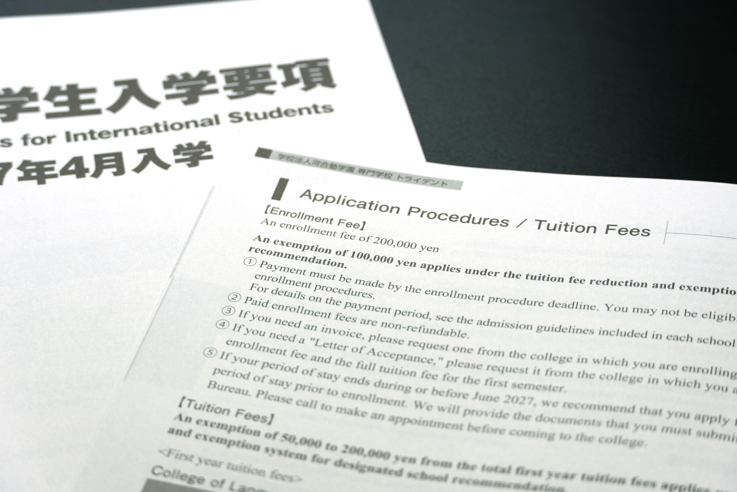 専門学校トライデント様 外国人留学生入学要項